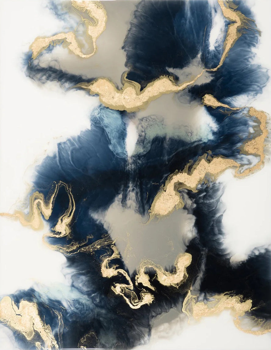 Allison Esley creates luminous resin works that float between painting and sculpture. She builds each piece through a process of layered pours, embedding alcohol inks into resin to capture moments of diffusion, bloom, and drift. The work evolves slowly, with time between layers allowing color and light to interact across suspended planes. Her compositions often evoke natural phenomena—heat maps, cloud forms, or geological strata—while maintaining a precise, modern finish. Balancing intuition and control, Esley explores the intersection of material, light, and spatial energy.