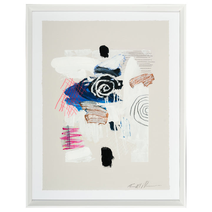 Hand-embellished giclee on fine art paper. Size includes frame.