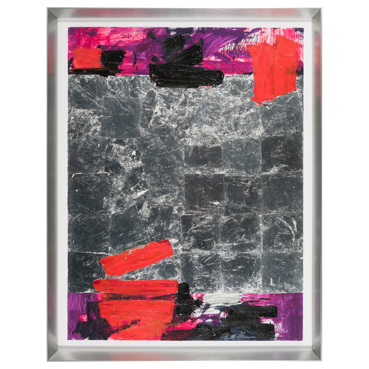 Giclee on fine art paper hand embellished with silver leaf. Size includes frame.