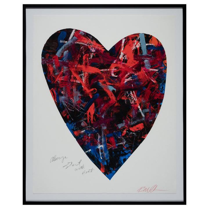 Hand-embellished giclee on fine art paper. Size includes frame.
