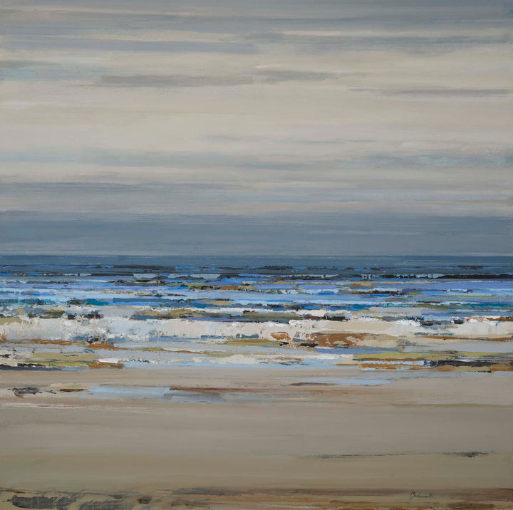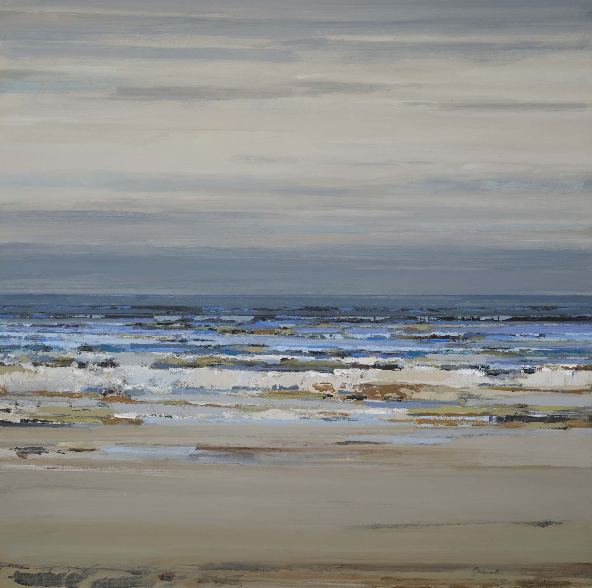 Artist Lawrence Behunek captures a serene sea in this abstract coastal giclee print.
