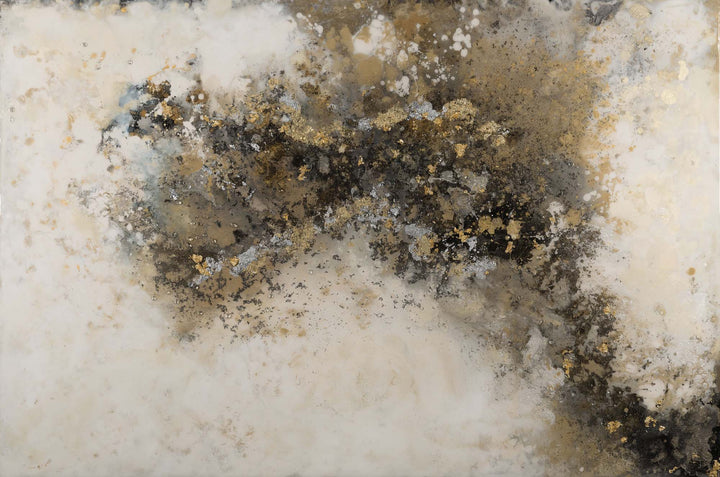 This luxe giclée on gallery-wrapped canvas is hand embellished with gold leaf and crystals then coated in resin for an elegant finish.