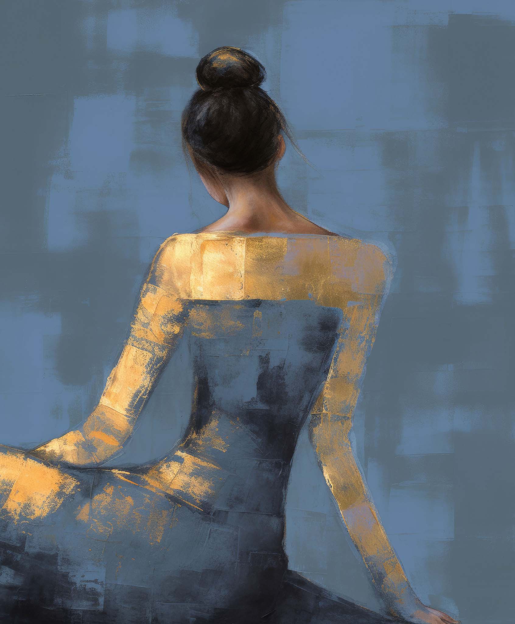 This giclee print of an elegant woman is hand embellished with gold leaf.