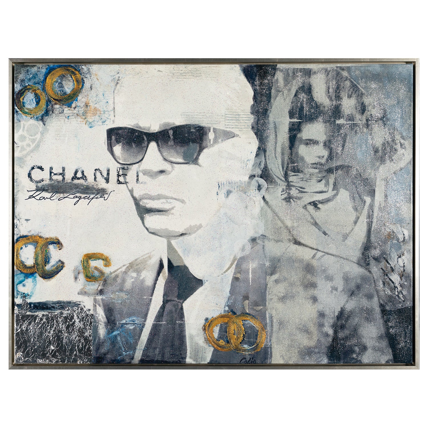 Hand-embellished giclee on canvas. Size includes frame.