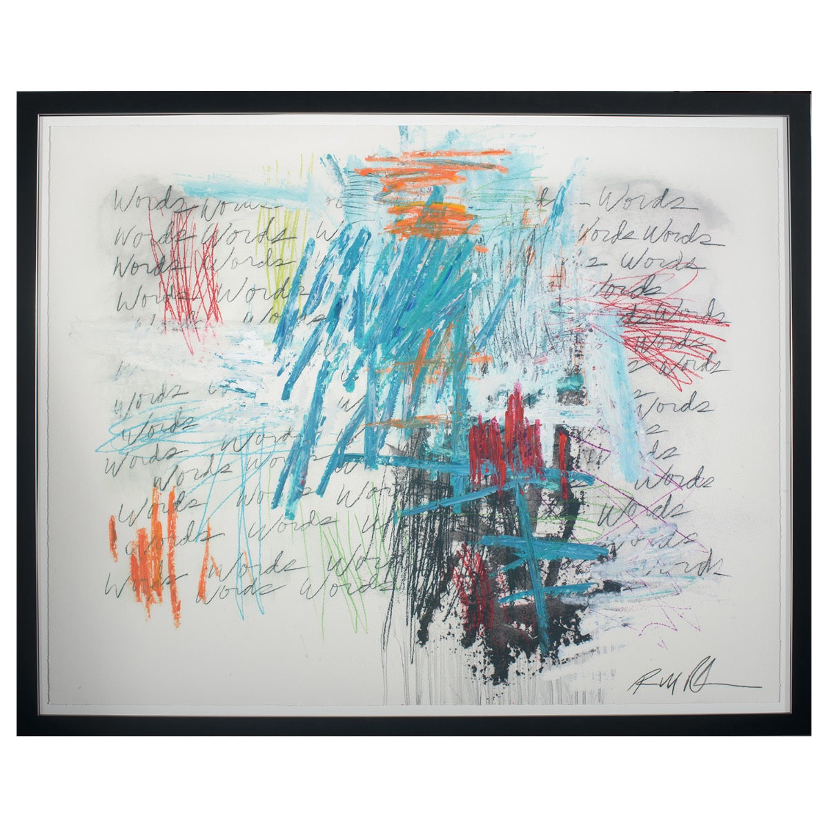 Experience the allure of the expressive world with Mark My Words #2 a hand-embellished giclee on fine art paper remarkably created by an artist Robert Robinson. The lively brushstrokes and layered textures create a chaotic yet visually attractive composition. This abstract piece of artwork erupts with colorful repeated writings throughout the canvas adds a layer of textual intrigue, merging flawlessly into the background.