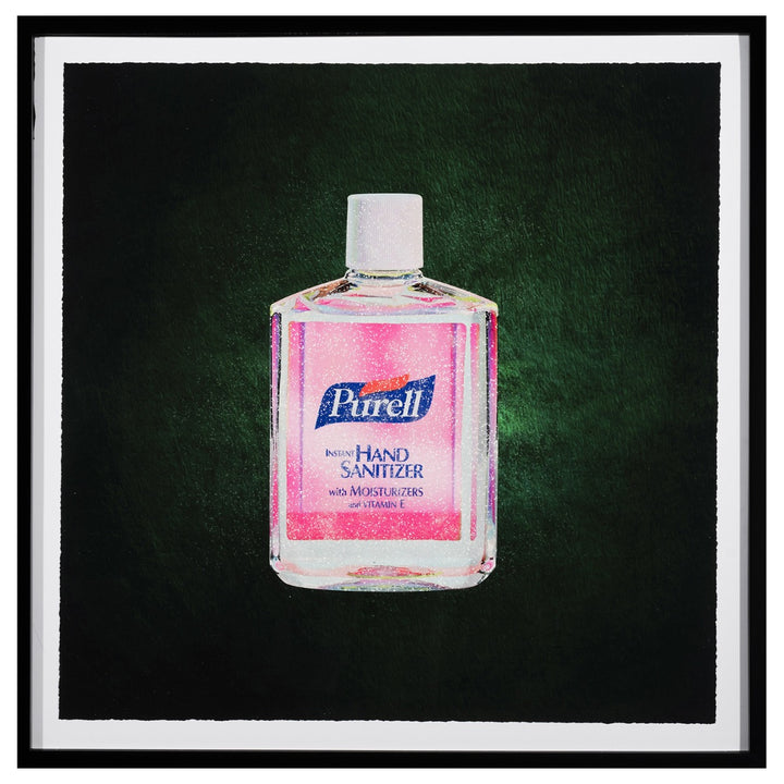 Giclee on fine art paper hand embellished with glitter. Size includes frame.