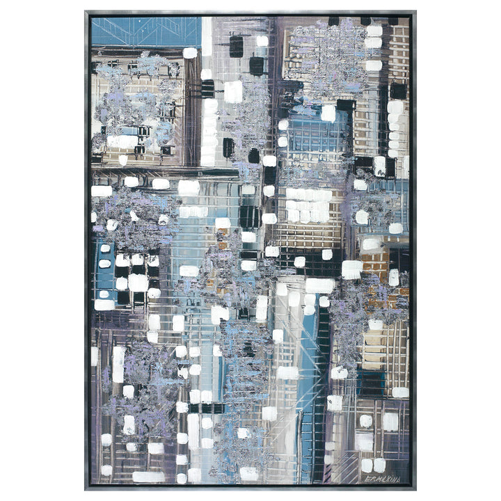 The structured elements and fluid brushstrokes of this pre-framed painting evoke a sense of urban architecture and organic balance, making Serenity 2 a perfect statement piece for modern setting that sparks conversation.