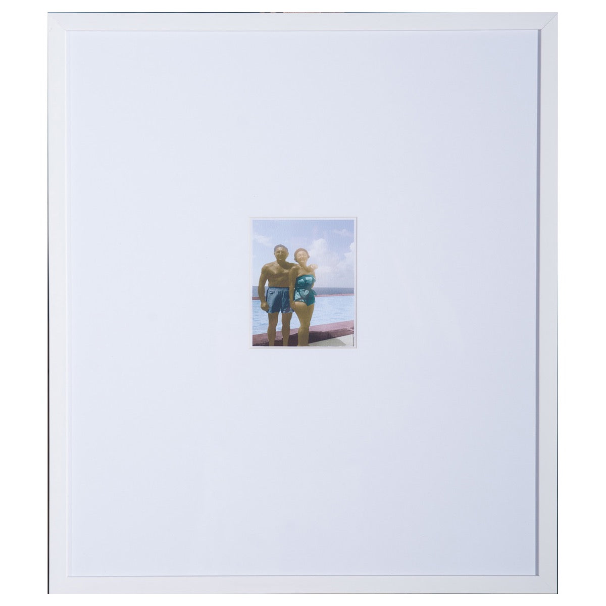 The stunning painting housed in a sleek white frame radiates tranquil beauty making Sol & Helen Standing an ideal focal point for contemporary spaces that brings a refined artistic touch to any setting.
